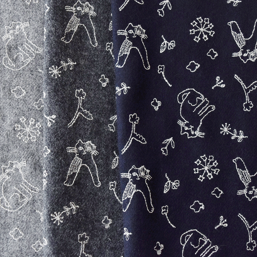 今までにご紹介したプリントや刺繍生地をはじめ、ウール生地に刺繍をほどこしたこの時期にぴったりの生地もご用意いたします。