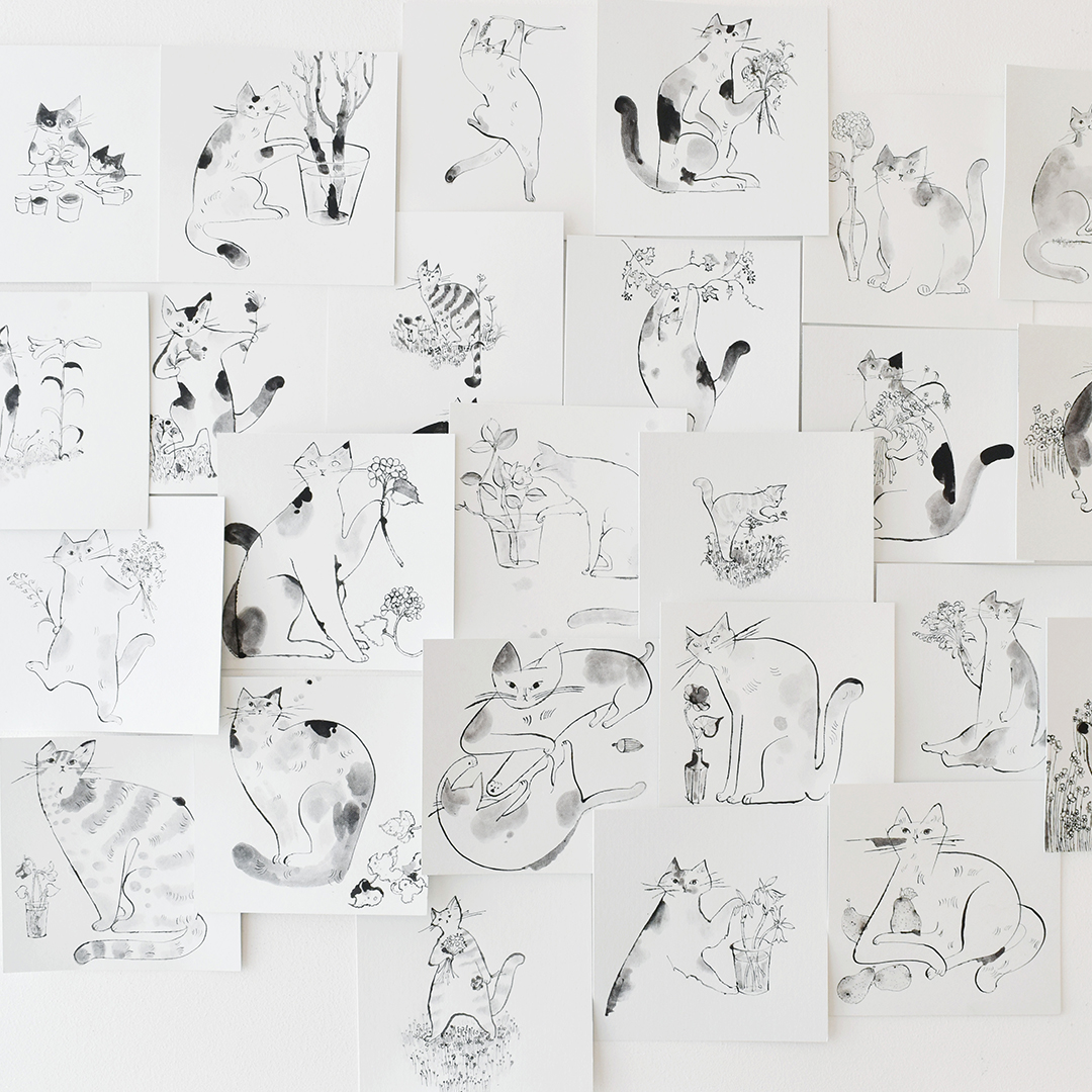 今回の展示会では、猫と植物をテーマに、約150点の作品がギャラリーの空間いっぱいに展示されます。