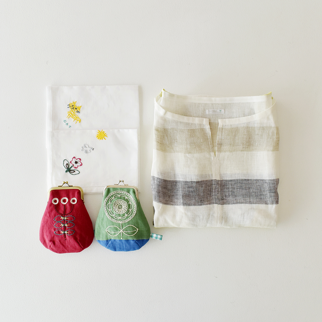 作家先生方が縫製・製作されたお洋服や小物たち、またワークショップで使用したサンプル、そして本の撮影などで使用してそれっきりになってしまっている雑貨などをご提供いただき販売いたします。