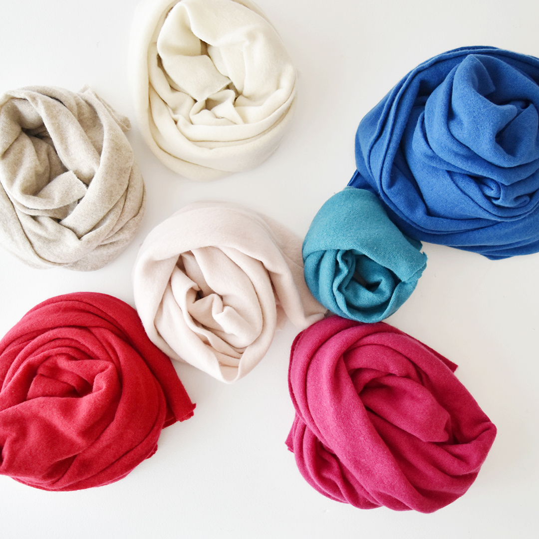 シルクやカシミヤ、ウールガーゼなど肌触りのやさしい生地を取り揃えました。