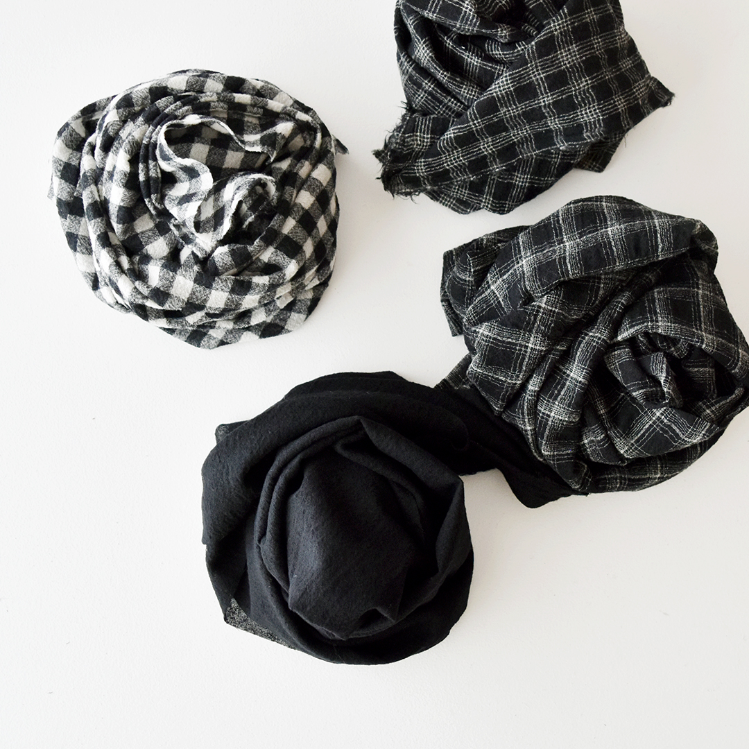 ウールガーゼ、シルクやカシミヤのフリース、シルク×リネンなどストールや巻きものにおすすめの生地が入荷します。