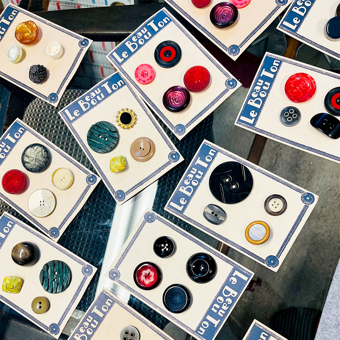 フランスでおふたりがひとつずつ選ばれ、買い付けられたボタンやリボンなどの手芸品をたくさんご用意いただきます。フランスの蚤の市に出かけた時のようなお気に入りとの出会いを探しにぜひご来店ください。