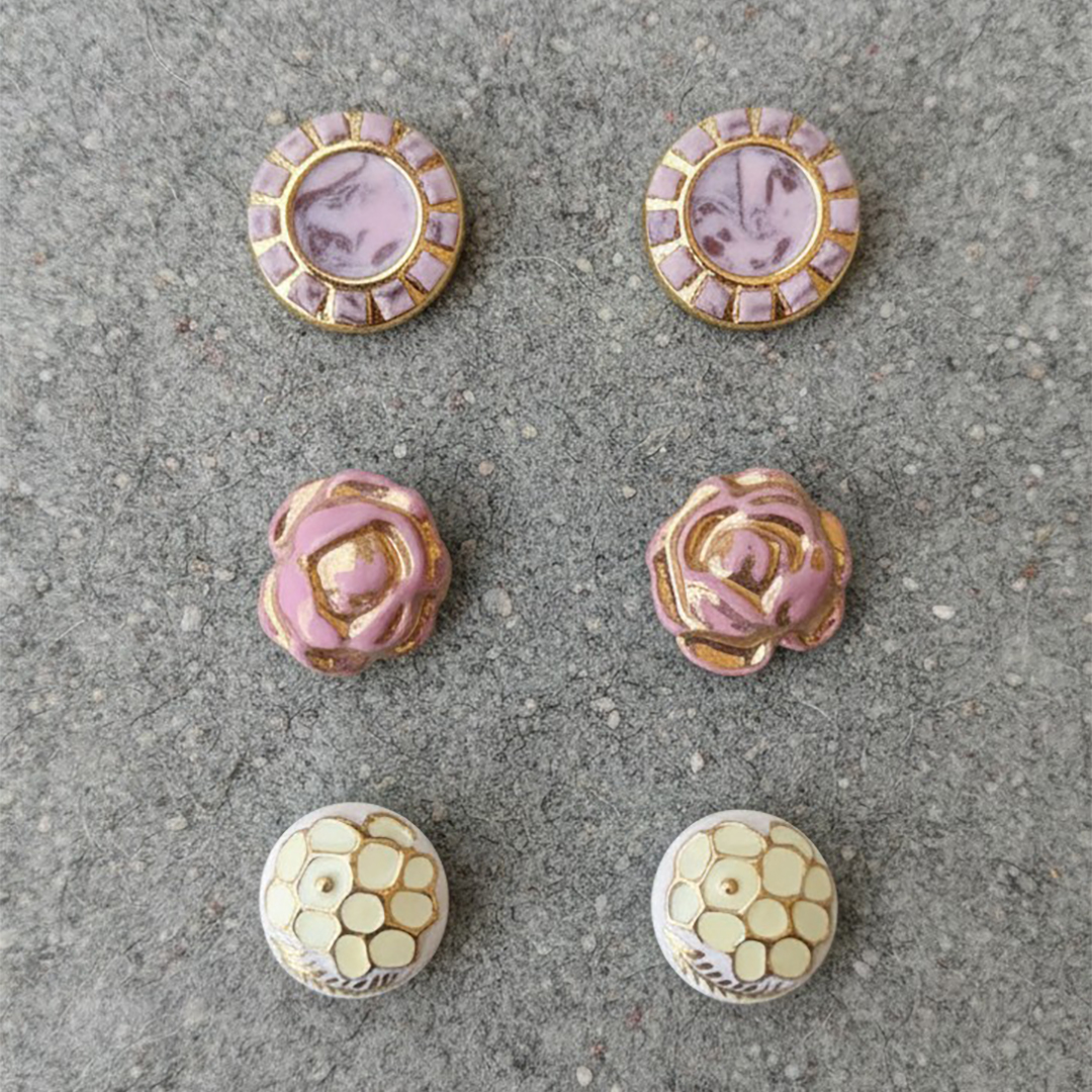 フランスで買い付けた、現在は手に入らないちょっと古いボタンです。色々な種類をご用意いたします。とてもフランスらしい色使いや遊びの効いたデザインで見ているだけでもワクワクするボタンです。