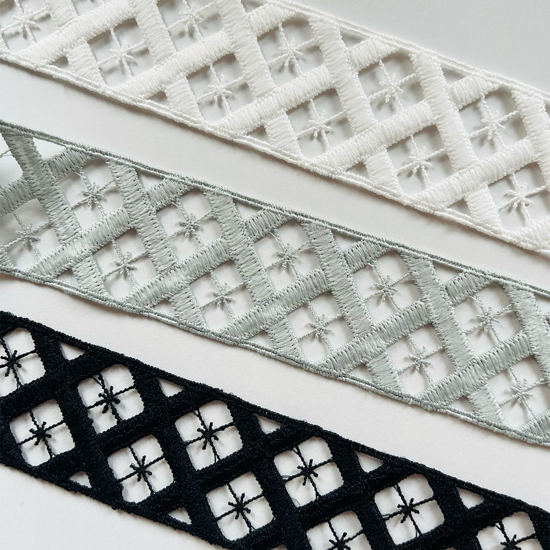フランスを代表する最高峰の刺繍資材エンブロイダリーメーカー。上質なコットン糸から、シルク、リネン、レーヨンやカシミヤなどを混ぜながら施す刺繍の繊細さは圧巻です。糸のブレンドで成し遂げられる美しくモードなリボンをお楽しみください。