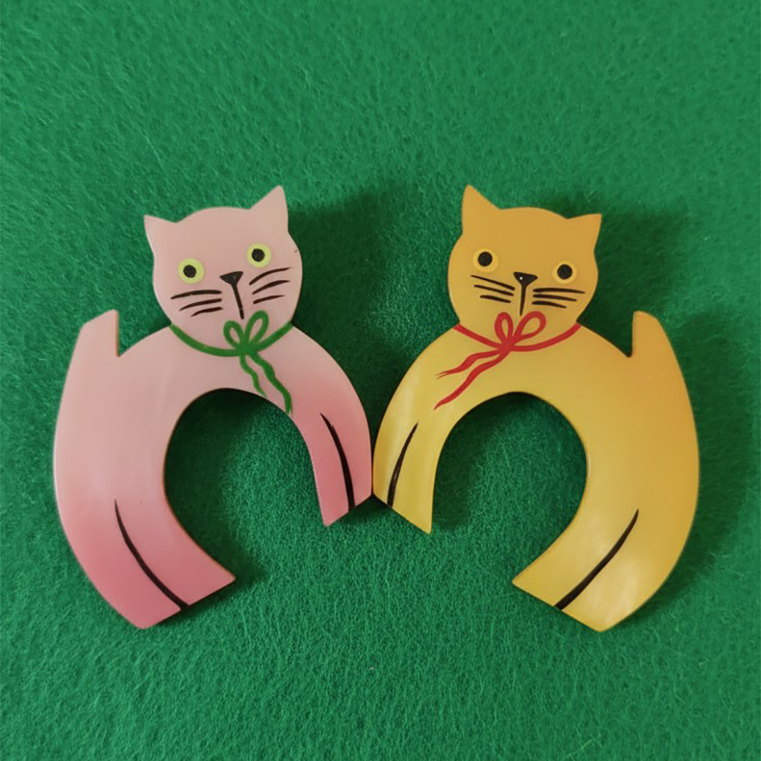 フランス人アクセサリーデザイナーMarie Christine Pavoneによる天然素材カゼインを使用したハンドメイド一点もののブローチ。ユニークなカットとデザインでつい集めたくなってしまう素敵なブローチです。