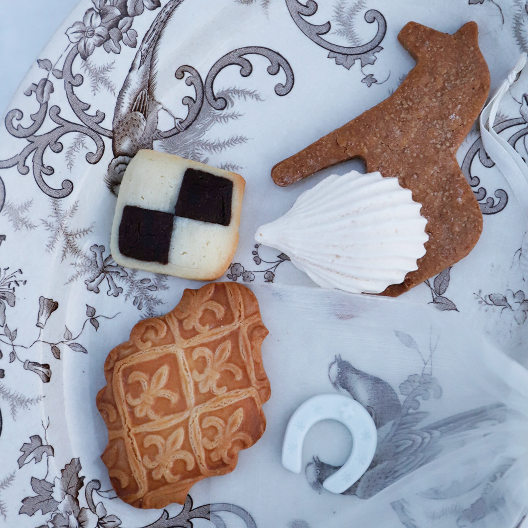 幸せを呼ぶオリジナルの馬蹄フェーブ、ピスタチオチョコレートを挟んだ幸せを運ぶ馬ダーラナホースをかたどったクッキー。さらに、ダミエやクラシックなクッキーを添えて、味わいも彩りも楽しい詰め合わせに仕立てました。贈る方にも、受け取る方にも、やさしい幸運が届きますように。