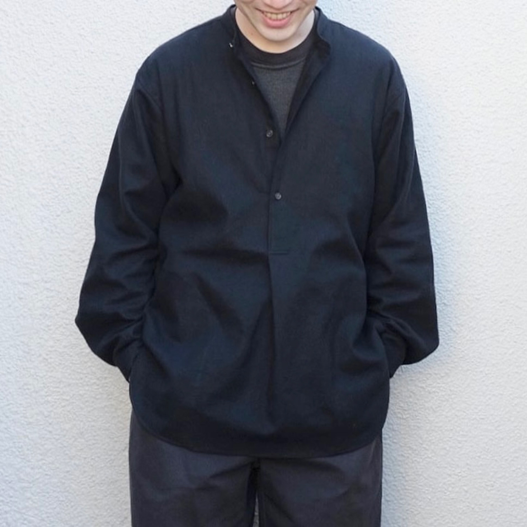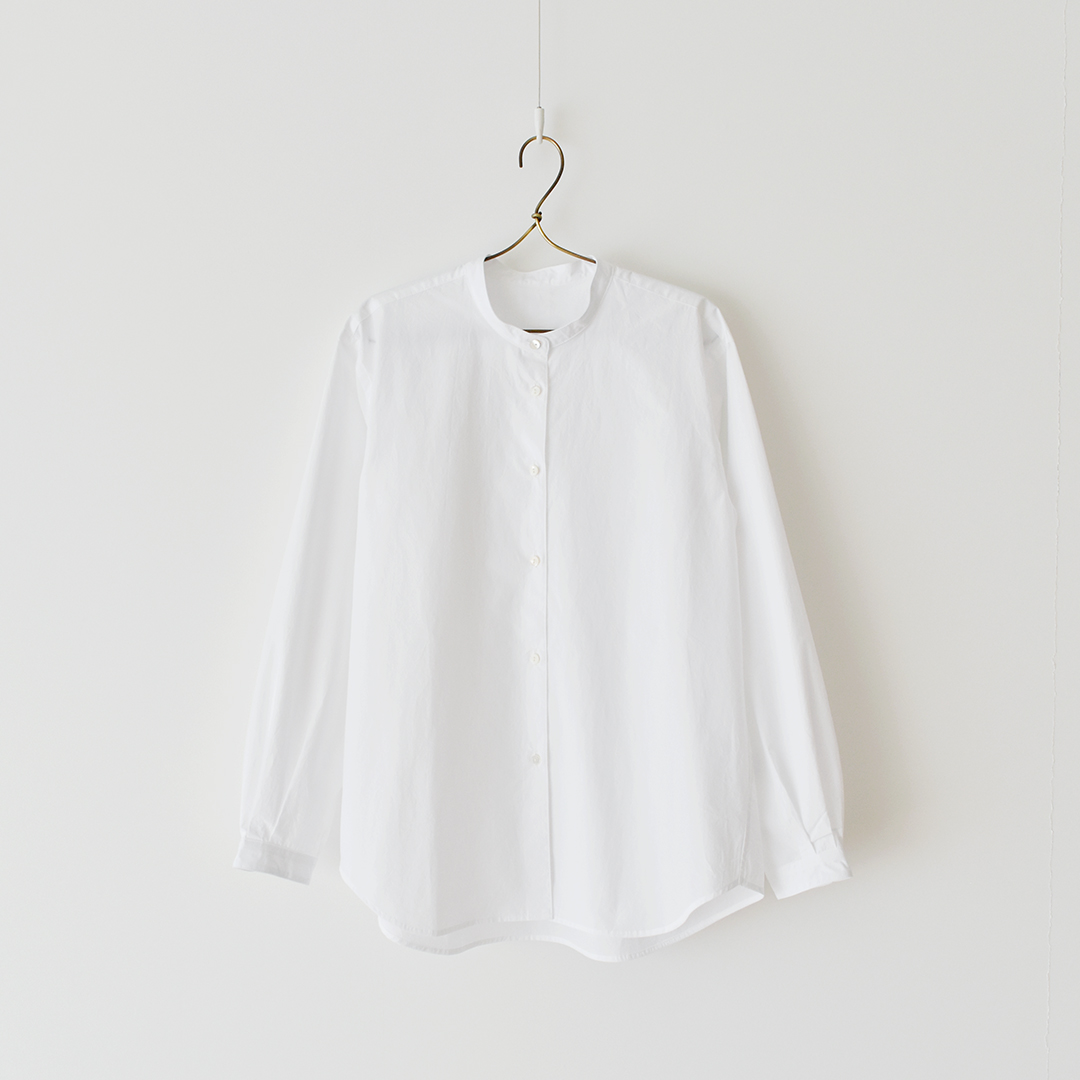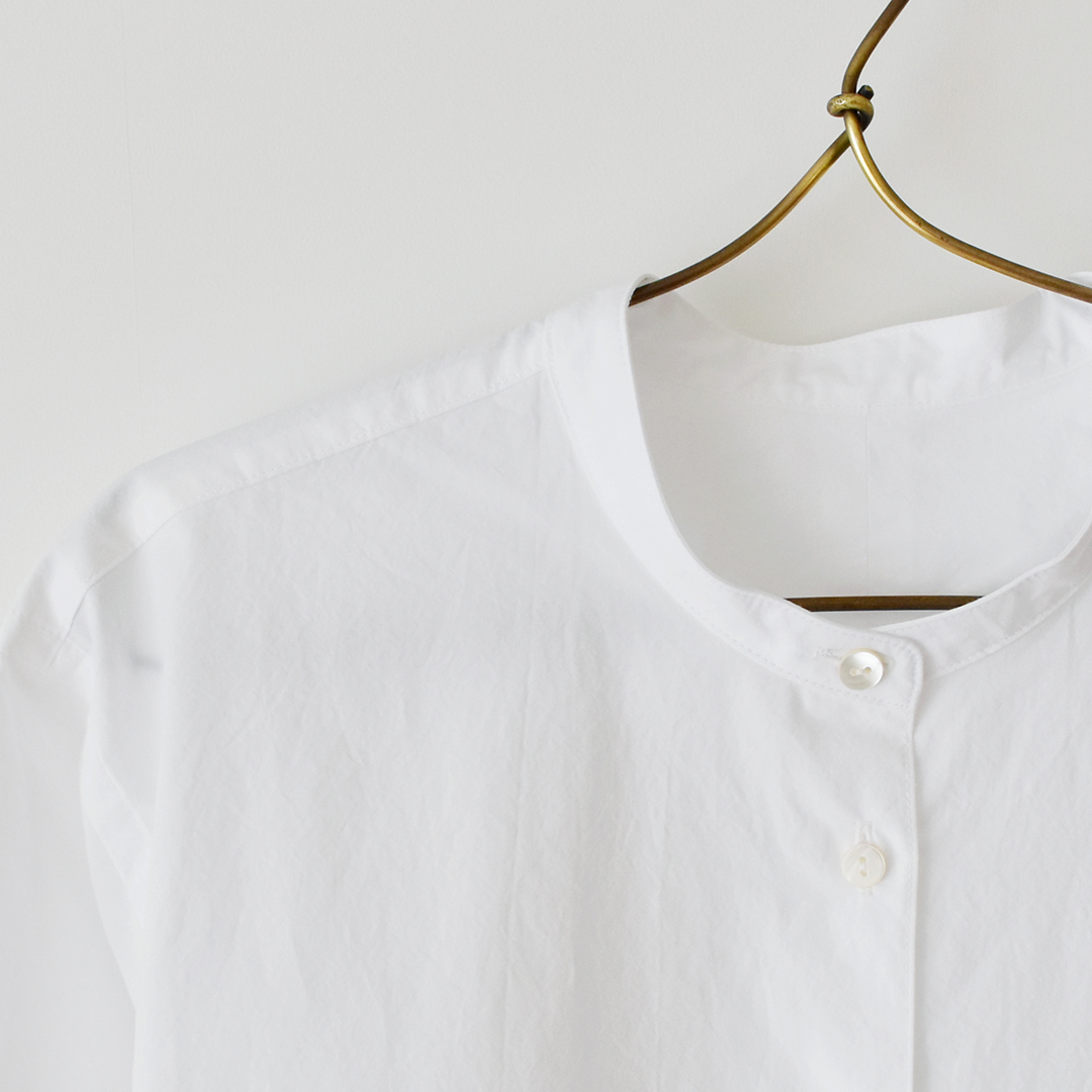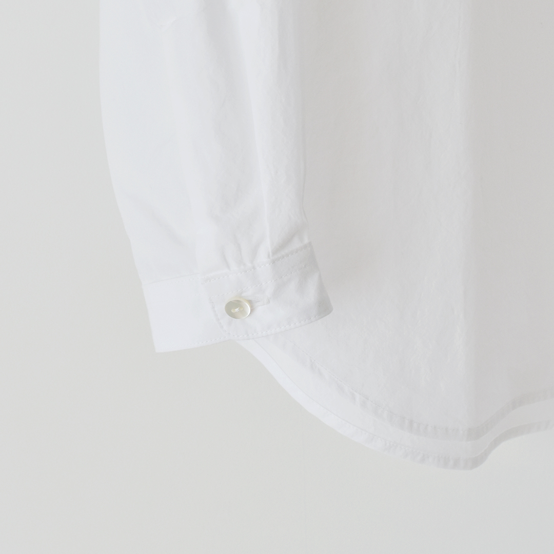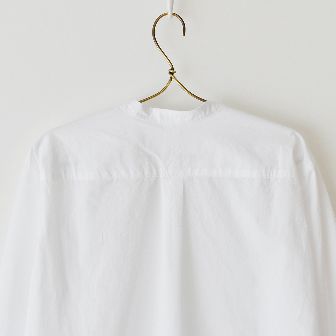 ホーローシャツのユニセックスのシャツパターンをベースに、ステッチの入れ方やカフス部分など細かいディテールにこだわり、よりシンプルで繊細な雰囲気に仕上げていただきました。