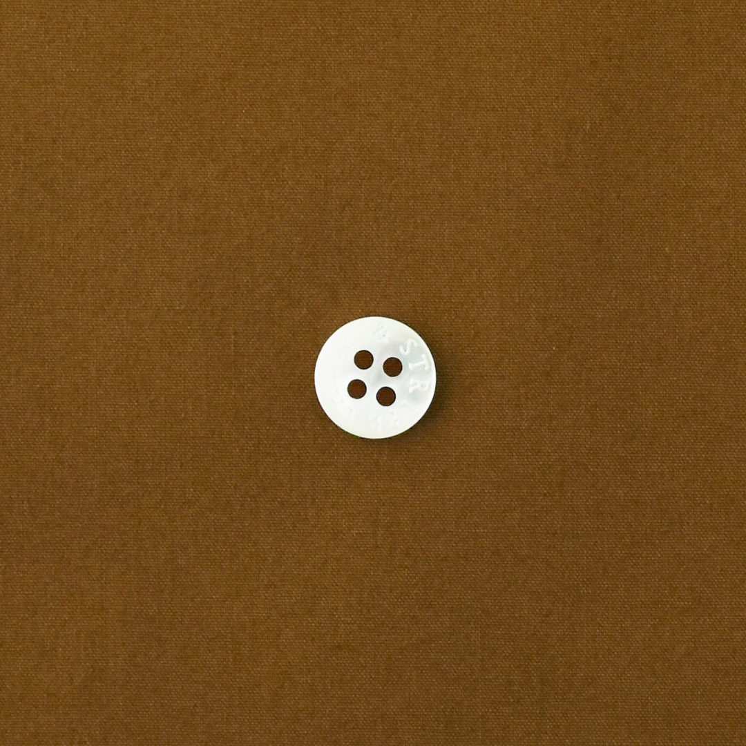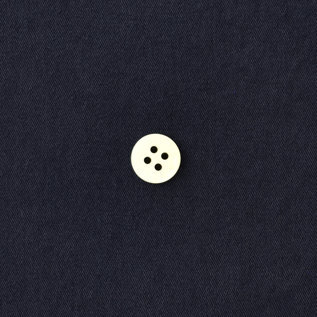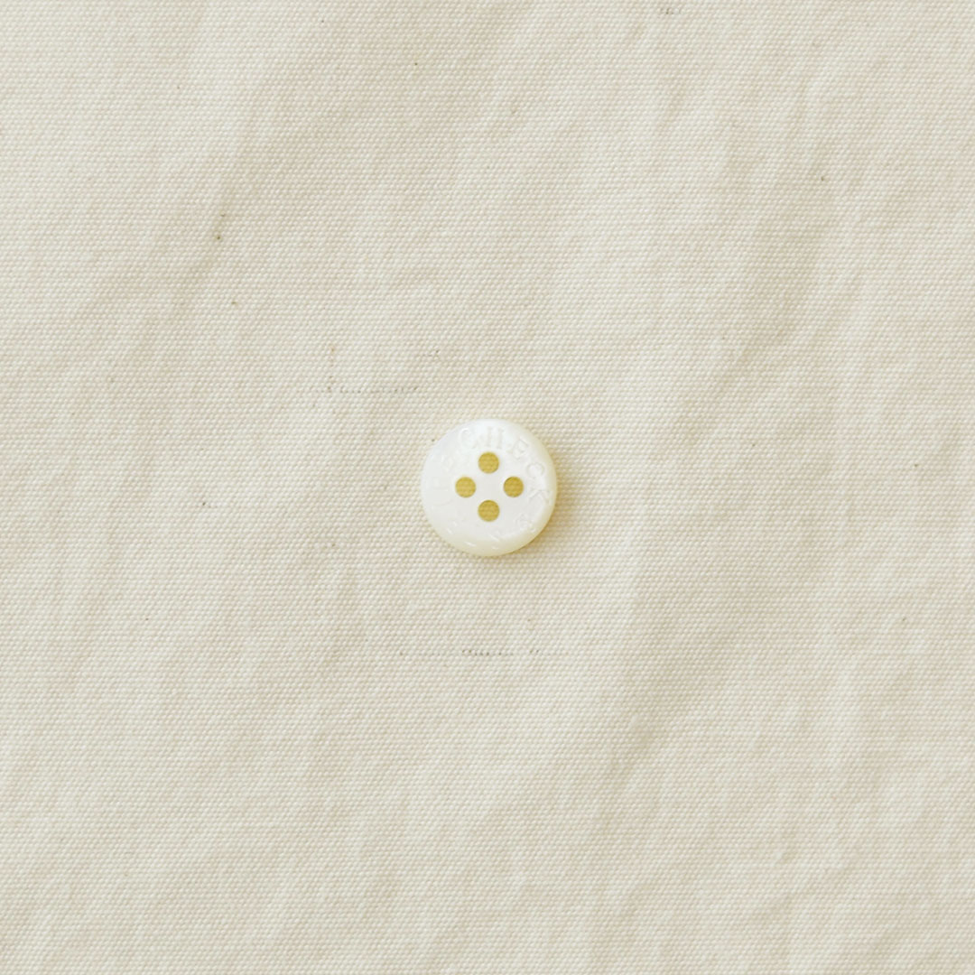タテ糸に綿の中でも最高品種と言われるスーピマコットンの細番手の糸を使用しヨコ糸はフランス産原料を用いたリネンで織られた高密度のハーフリネンです。一般的なコットンリネン素材は、タテ糸とヨコ糸に綿とリネンをブレンドした混紡糸を使用するのに対しよそいきのハーフリネンはタテ糸とヨコ糸にそれぞれ異なる素材を使用することにより風合いを損なうことなく、素材それぞれの特徴を活かしています。織り組織は目が詰まっておりわかりにくいですが綾織りになっています。表面は綿の細番手ならではの自然な光沢感と滑らかな肌触りで裏面はリネンの持つナチュラル感があり、さらっとした肌触りになっています。高密度の織物ですがタンブラー加工を施すことにより滑らかな光沢感と程よい落ち感が生まれます。
