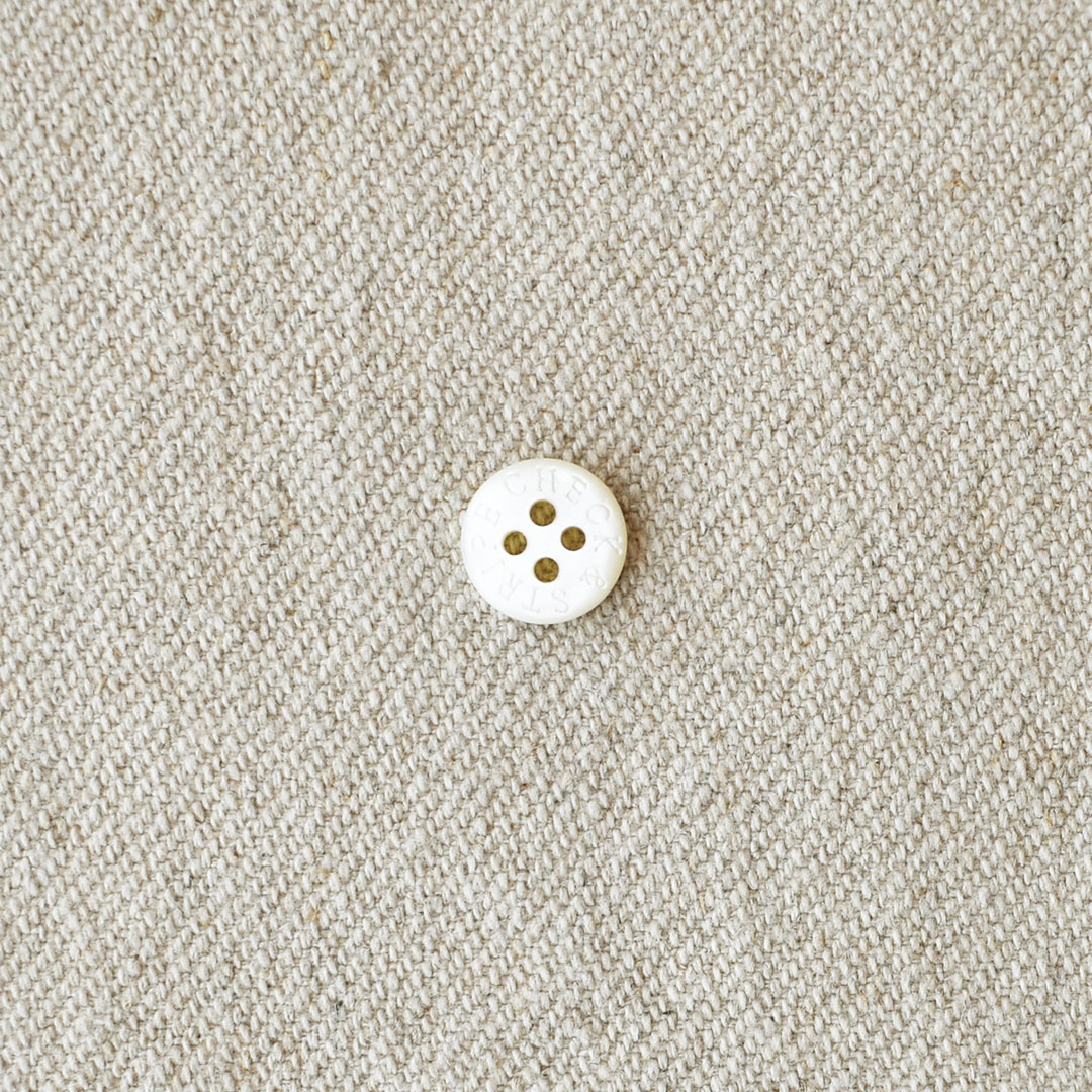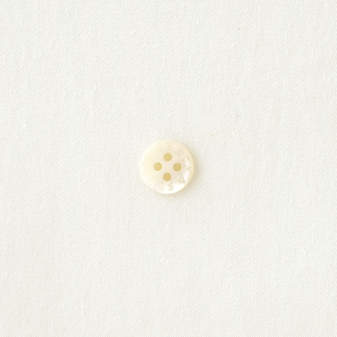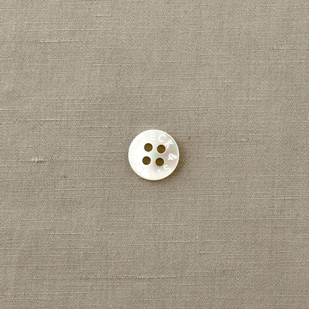 タテ糸に綿の中でも最高品種と言われるスーピマコットンの細番手の糸を使用しヨコ糸はフランス産原料を用いたリネンで織られた高密度のハーフリネンです。一般的なコットンリネン素材は、タテ糸とヨコ糸に綿とリネンをブレンドした混紡糸を使用するのに対しよそいきのハーフリネンはタテ糸とヨコ糸にそれぞれ異なる素材を使用することにより風合いを損なうことなく、素材それぞれの特徴を活かしています。織り組織は目が詰まっておりわかりにくいですが綾織りになっています。表面は綿の細番手ならではの自然な光沢感と滑らかな肌触りで裏面はリネンの持つナチュラル感があり、さらっとした肌触りになっています。高密度の織物ですがタンブラー加工を施すことにより滑らかな光沢感と程よい落ち感が生まれます。