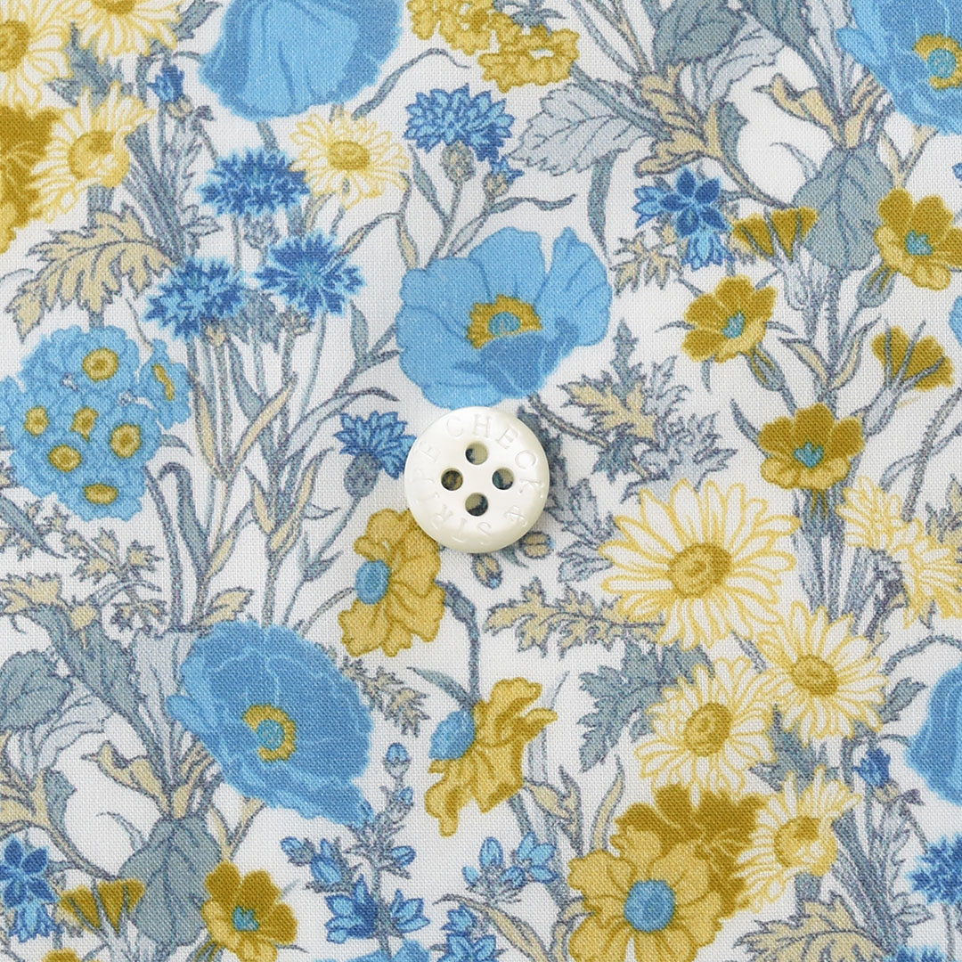 リバティのアーカイブから発見された手描きのアートワークをベースにした「フローレンス・メイ」には、英国の田園地帯に咲くたくさんの野生の花々が描かれています。エレガントなポピー、デイジー、スイセン、サクラソウ、ナデシコ、コーンフラワー、そしてワスレナグサが、繊細なトレーリングパターンを描き、春のまばゆい草原を長く歩いているようなイメージに仕上がっています。